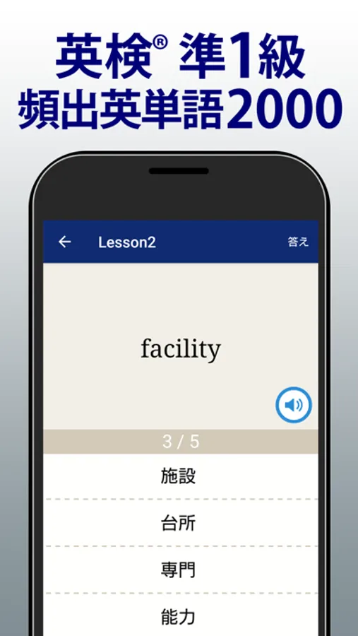英検®準1級に頻出の2000英単語を、よく出る英単語から順に学習。