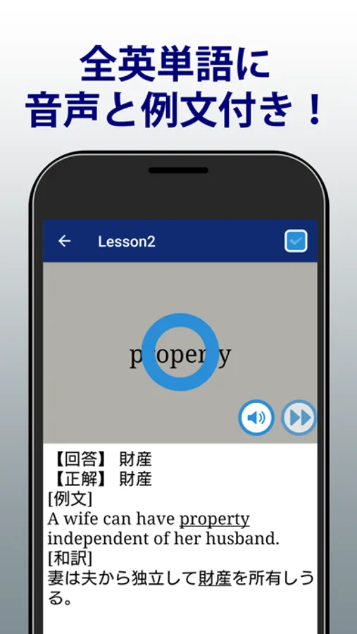 全ての英単語に英語音声と例文が付いているので覚えやすい!
