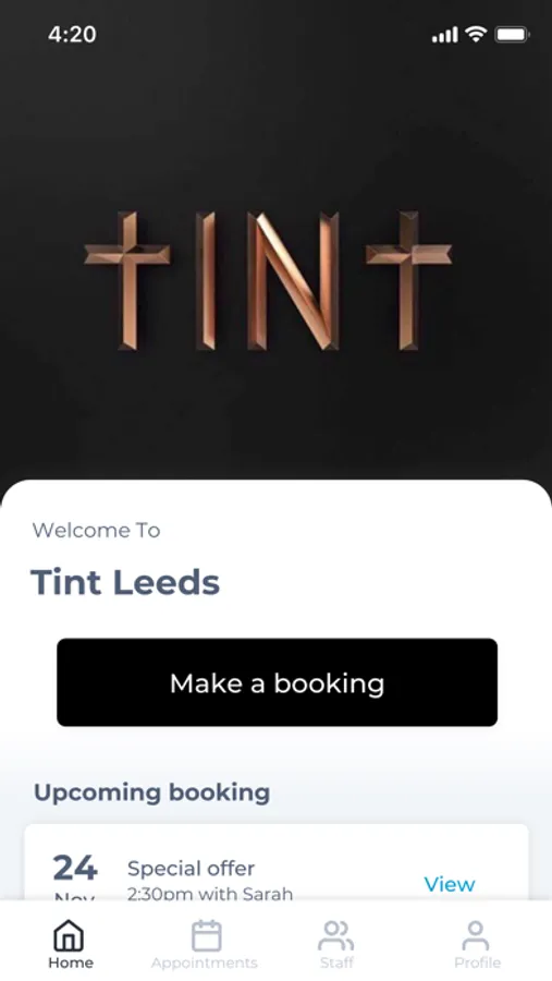 The Tint Leeds app makes booking your appointments and managing your loyalty points even easier. You're just a few taps away from feeling good and looking great!