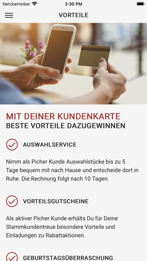 1. Ein Muss für alle Picher-Fans: Mit der Picher App hast Du alle Vorteile auf einen Blick und Deine digitale Kundenkarte immer auf Deinem Smartphone dabei.