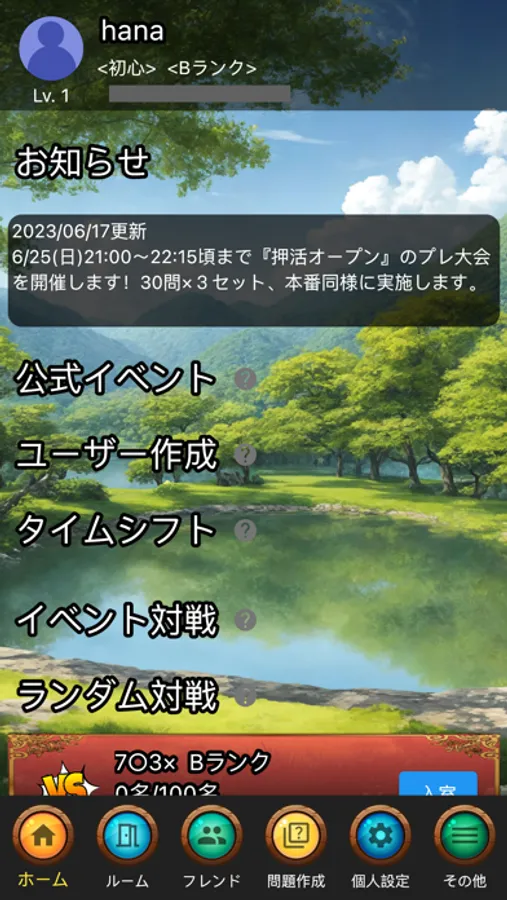 後述の問題作成機能を使用し、ユーザにより作成した問題群で早押しクイズを楽しめます。