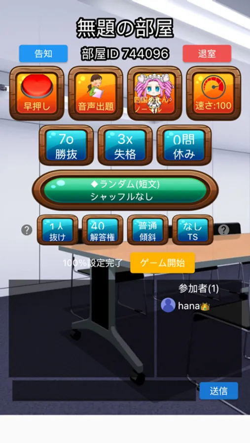 作成した問題の集まりは「クイズデッキ」という形で保存され、使用するデッキをルームで指定することで、