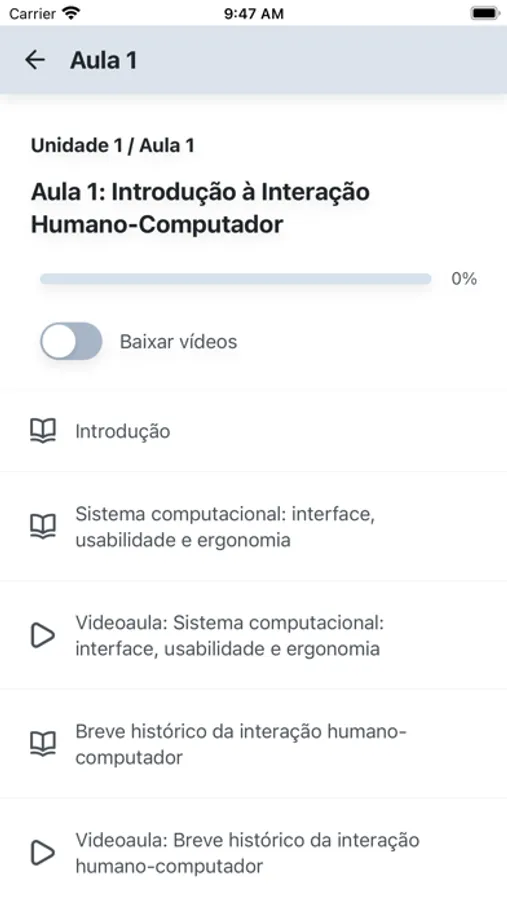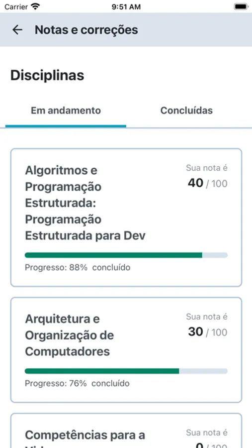 • Acompanhe o seu progresso no curso, visualizando a quantidade de aulas finalizadas e pendentes;