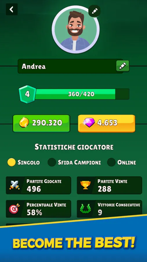 - Choose Briscola in "Challenge the Champions" mode, you can have fun discovering all the Champions of the Italian regions, challenge them and try to beat them!