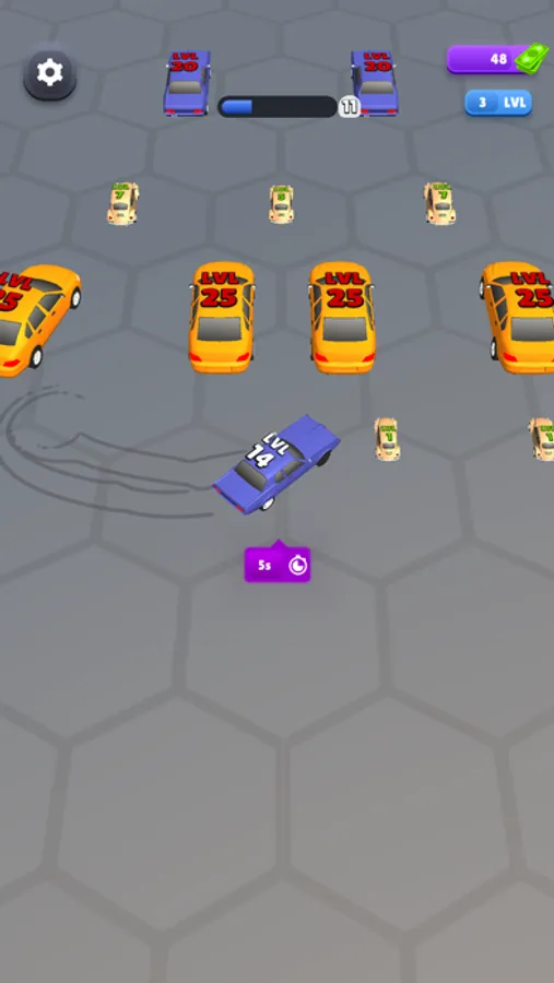If you fail to defeat the boss, don't worry. You can upgrade your abilities and timer to collect more cars and try again.