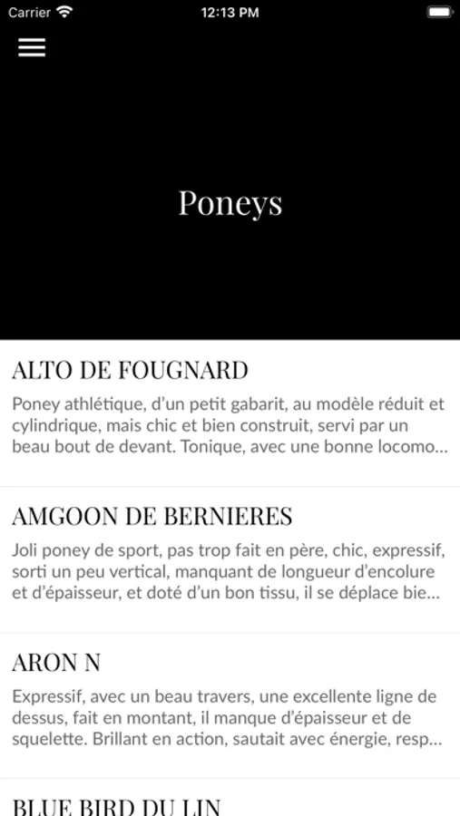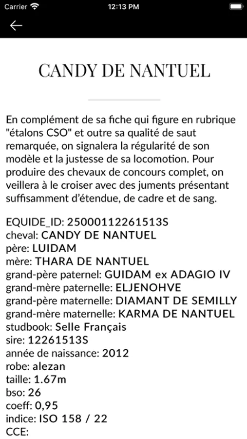 Les chevaux et poneys sont notés avec des appréciations établies par les experts de L'Eperon agrémentés de commentaires.