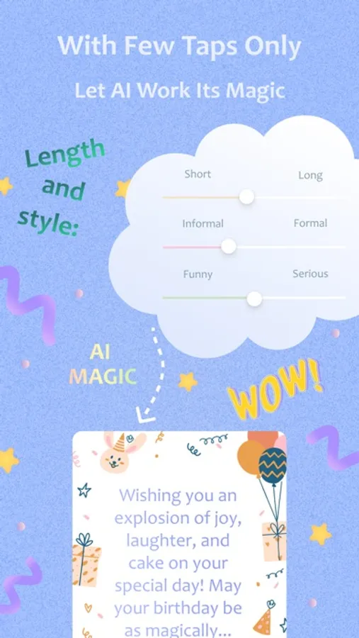 Are you tired of the same old cliched birthday messages? Want to make your loved ones feel truly special on their big day? Happy Birthday AI Wisher is here to help! With just a few taps, you can create beautifully crafted, unique birthday greetings that will make your friends, family, and colleagues feel celebrated and cherished.