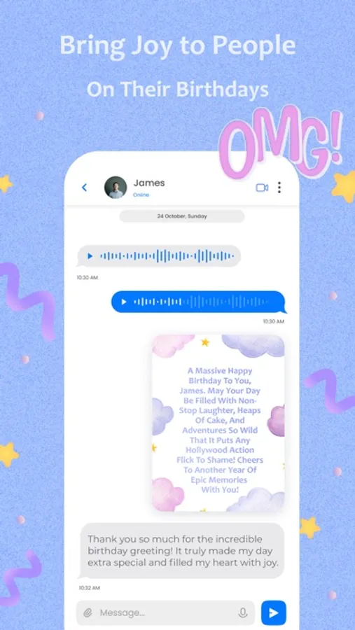 - Quick and Easy: Create custom birthday greetings in just 20 seconds with a few simple taps