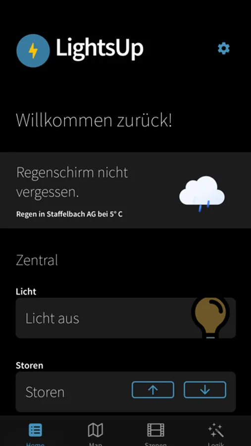 Erstelle ganz einfach via App eigene Szenenschaltungen, welche du dann auf der Homeseite einschalten kannst.