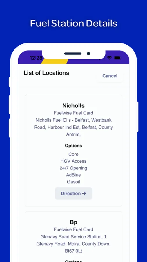 Your search results can be displayed as a list or map view, providing you and your drivers with the full picture of fuel stations available in your area.