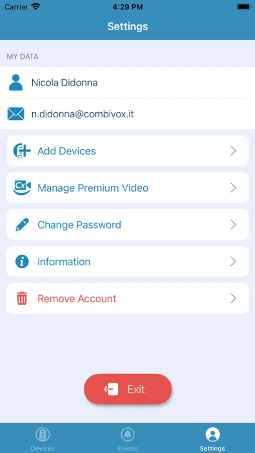 From the CombiView APP it is possible to view live (video streaming on request) the video surveillance area via Combivox Cloud Video (Premium Video subscription required) on AWS Amazon server.