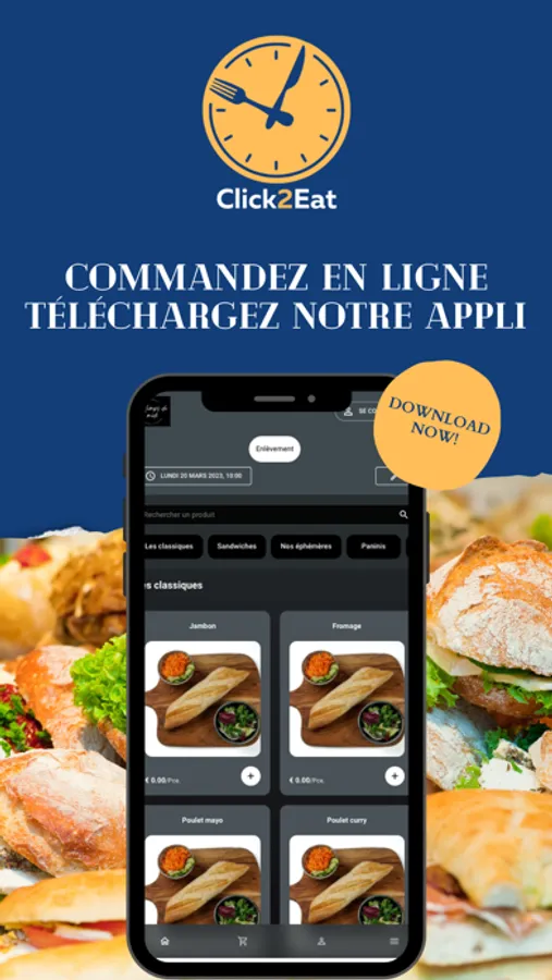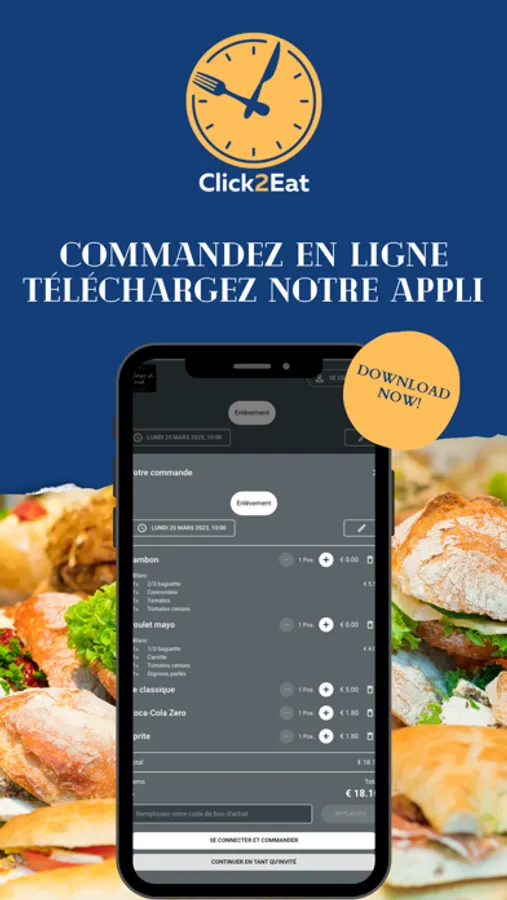 Où que vous soyez, avec l'application Click2Eat, vous pouvez commander sans souci parmi la vaste gamme.