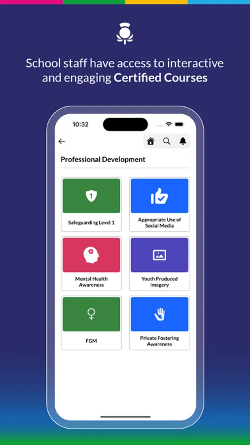 Tailored to meet the individual needs of every type of user you’ll find age-appropriate information that’s relevant to your role, there is something for everyone in the Safer Schools Scotland App.