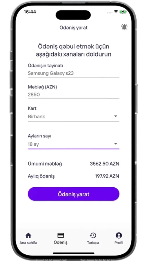 • Bir tətbiqdə bir neçə Bankın taksit imkanı