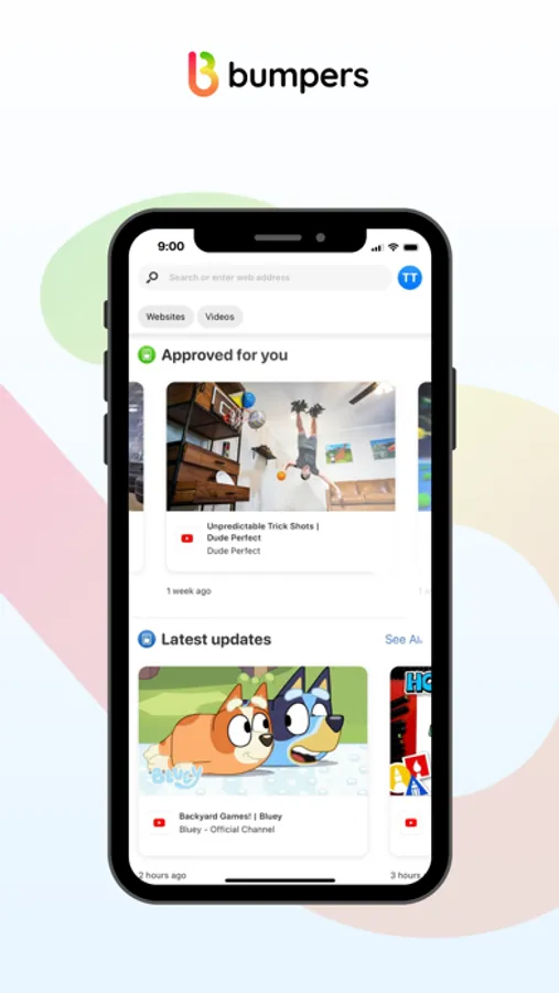 With Bumpers Kids, you can approve or deny individual videos, channels, webpages, and websites, giving you granular control over your child’s online exposure. Say goodbye to generic all-or-nothing filters and tailor your kid's digital experience.