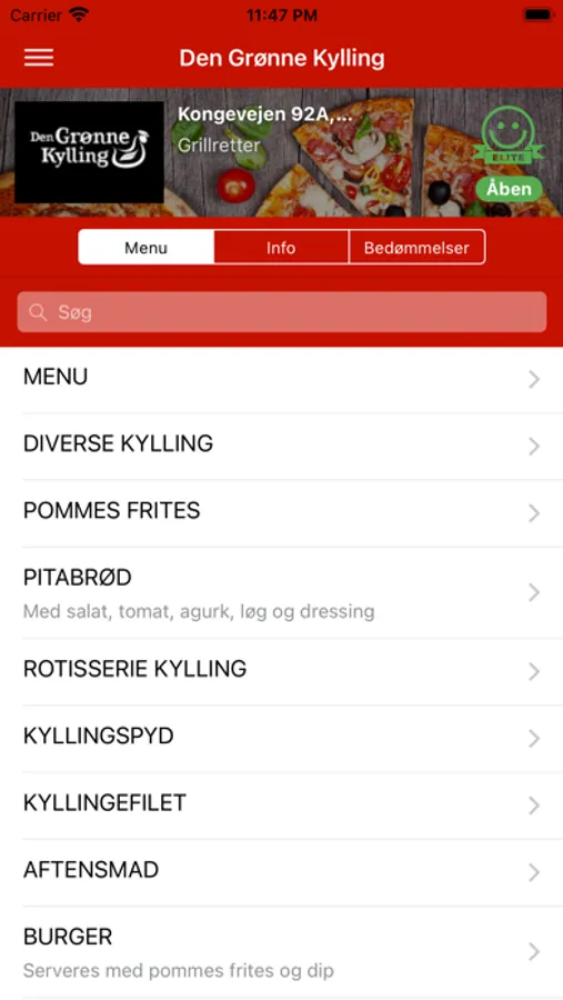 Bestil pizza, burger, pasta, m.m. med få tryk, nemt og hurtigt!