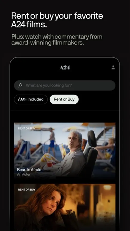 • Browse A24 movies available to rent (and own) with filmmaker commentaries