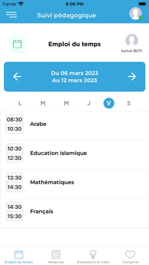 - Emploi du temps, notes et discipline