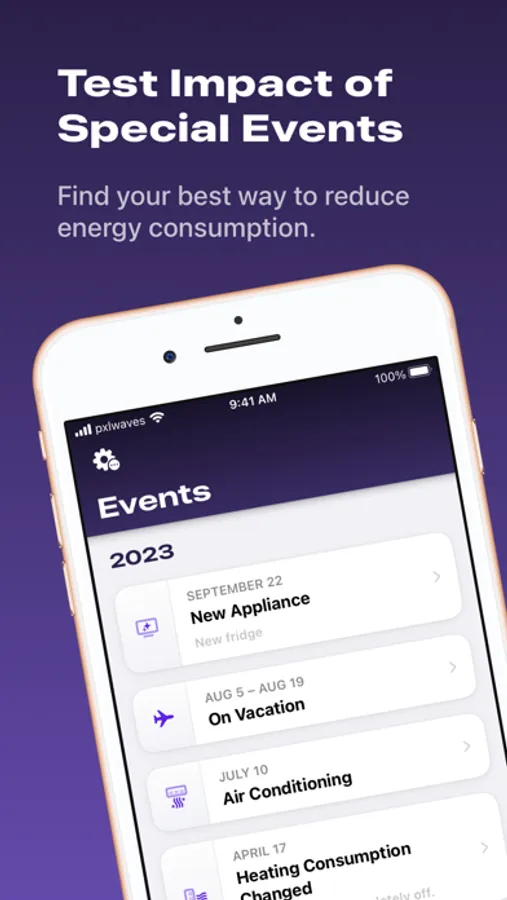 But the app is more than just a simple tracking tool. Keep an eye on ”special events” – such as turning down your thermostat by 1°C, buying smart home appliances or being in the home office – and see how much of an impact it has on your consumption over time. This way, you can make informed decisions about how to reduce your energy use without sacrificing comfort.