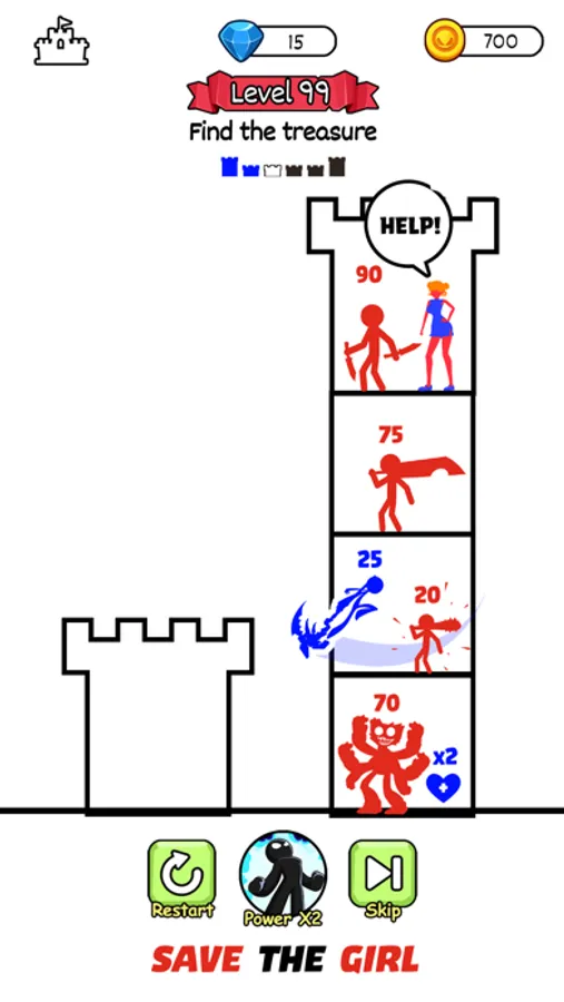 - Move your hero wisely to power up, collect the loot, kill the giant boss and save the princess