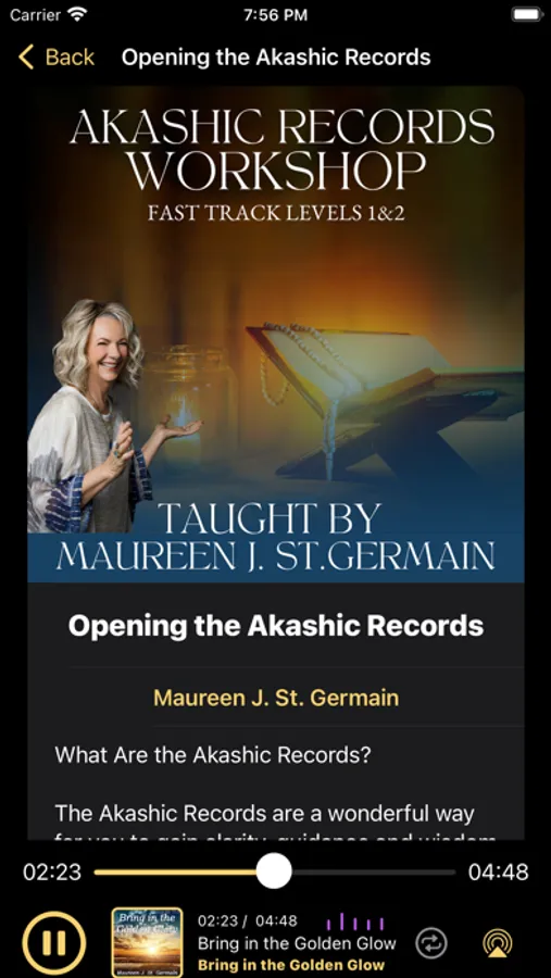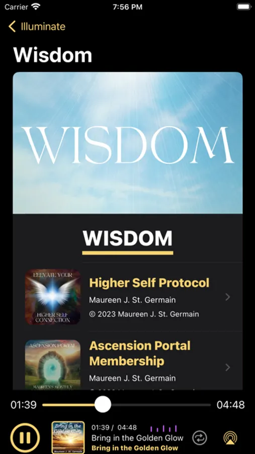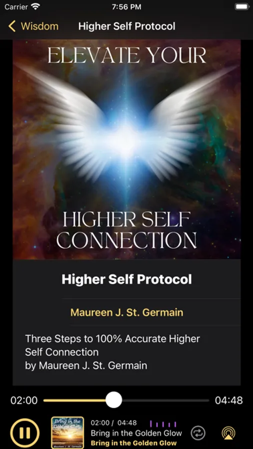 Along with the meditations the app hosts the Higher Self Protocol which can be found in the Wisdom section of the application. Maureen J. St. Germain has created and refined a 3-step process to give you 100% accuracy with your Higher Self connection. This is a profound teaching which is available free on the application.