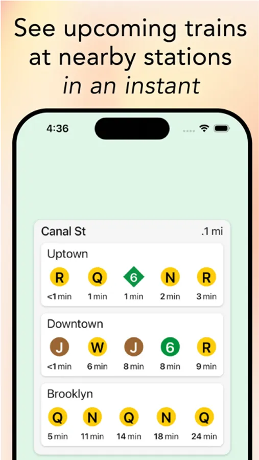Here is the quickest way to see when the next train will be here. Open up the app and instantly see upcoming arrivals for the nearest stations to you — no fumbling around tapping small buttons or trying to find the station on a map.