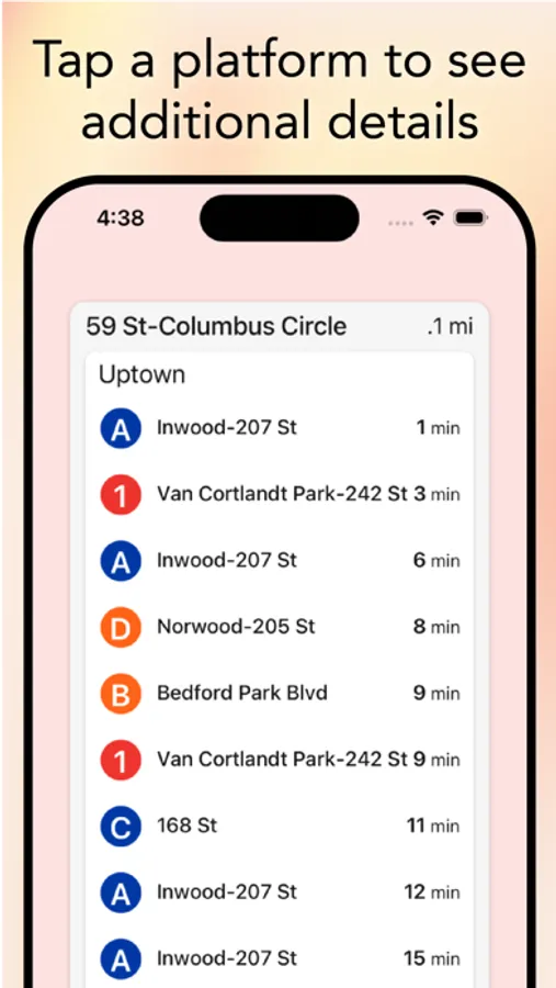 A press on one of the platforms shows you additional upcoming arrivals and last-stop details for each train. And, the arrivals at large stations that serve many lines are intelligently organized by heading, instead of being bucketed into just two categories.