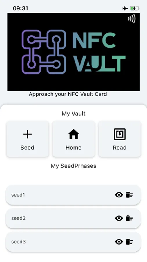 Everyone knows that not your keys, not your coins. So, the goal to security is keeping the seed phrases hidden and easy to use, if needed. With NFC Vault we achieve this: