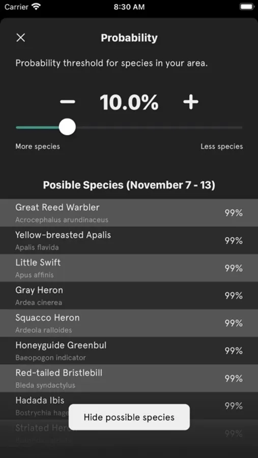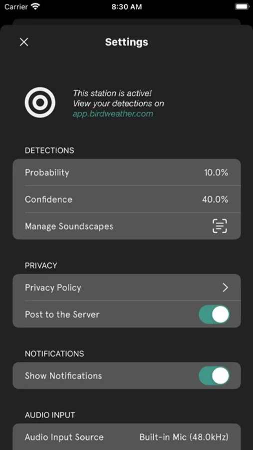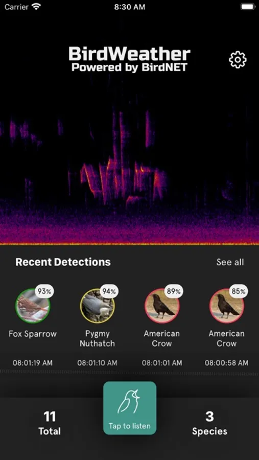 We built BirdWeather to be a living library of bird vocalizations. Using the BirdNET artificial neural network, BirdWeather is able to detect over 3,000 of the most common species across the globe. Simply launch the app and click Listen, and the app will continuously process the microphone stream, recording any detection's locally as well as on the BirdWeather server (https://app.birdweather.com).