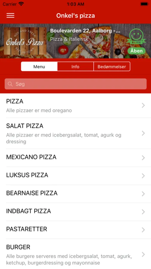 Bestil pizza, burger, pasta, m.m. med få tryk, nemt og hurtigt!