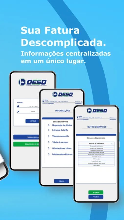 Com o APP da DESO você acessa rapidamente os principais serviços da concessionária. São diversas facilidades na palma da sua mão: