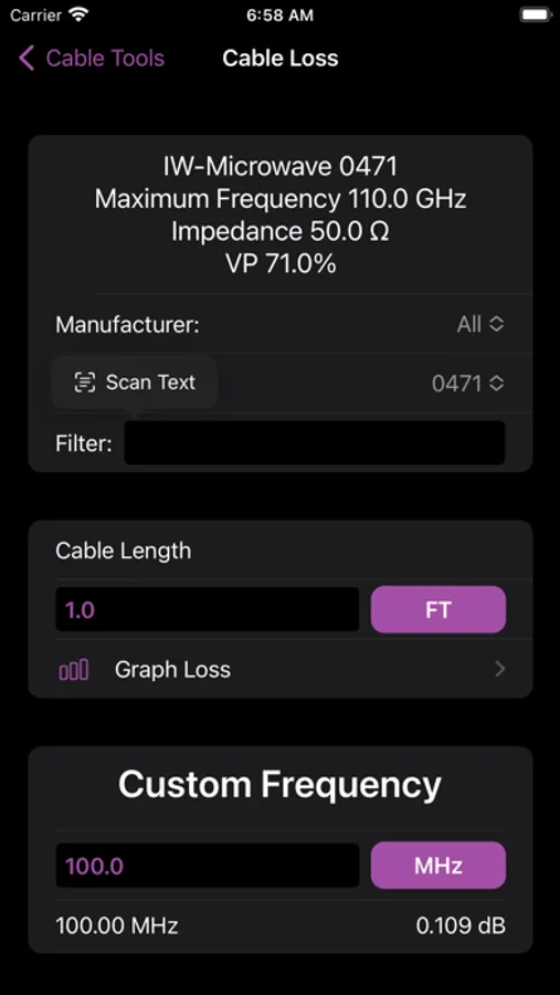 RF Cable tools for estimating cable loss, time delay, phase, wavelength. Includes over 300 cable types from multiple manufacturers.