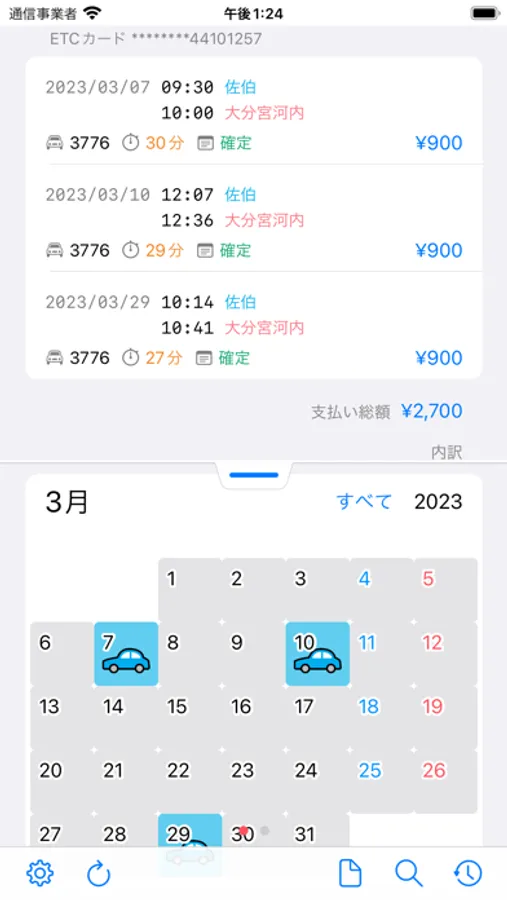 This app allows you to log in to the "ETC Riyou Shoukai Service" site within the app, read records, and generate various PDF files. The feature is that you can see the days you used ETC in a calendar format. You can also display the period-month by setting the separator day of the month. Data is saved within the app so that you can view previous records. There is also a widget that allows you to view records. Initially, you can only view it a limited number of times, but once you purchase the feature, the restriction will be removed. There is also a sister app that has fewer functions but is cheaper, so please use it according to your preference. Data is shared with sister apps so you can continue using it.