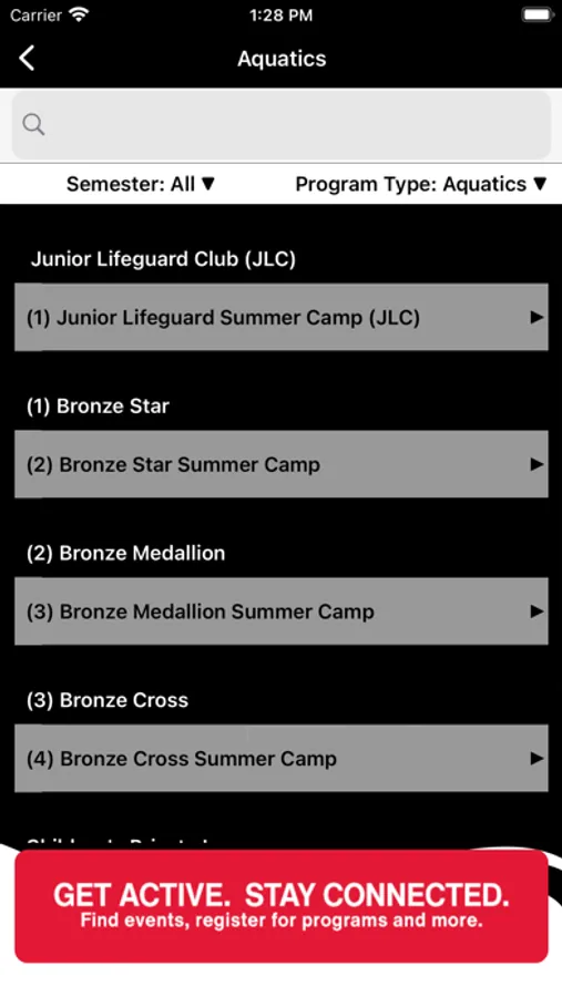 This app has information on the aquatics programs offered at the school, from lifeguard training to learn to swim. You can also check the swimming pool schedule.