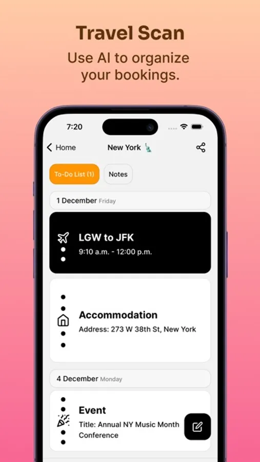 With Travel Scan, you can effortlessly upload a screenshot or PDF of your trip bookings and let our advanced AI technology do the rest.