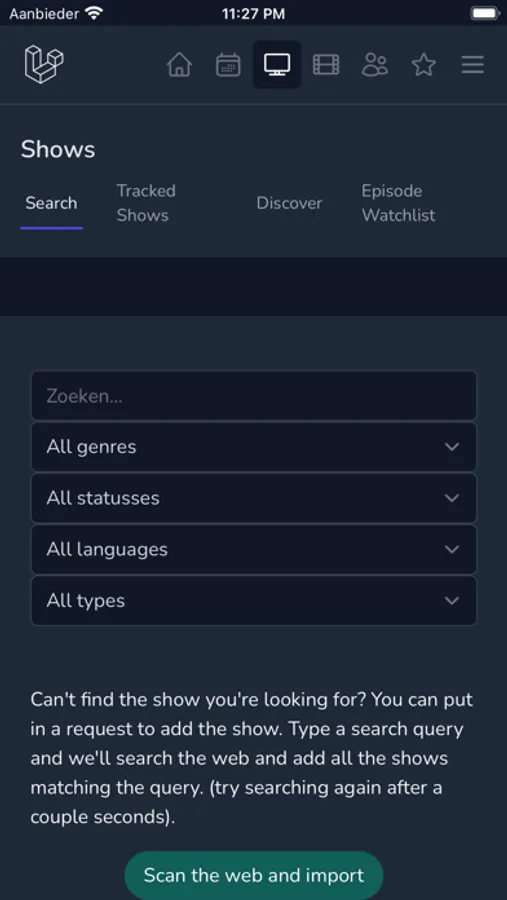 Want to track a movie or show not currently available in the app? Just enter the name and have the app automatically scan the web and import it.