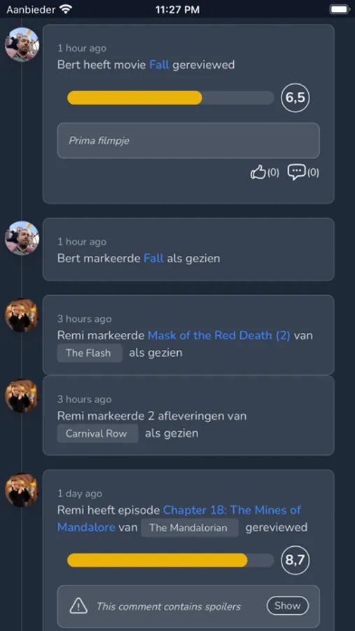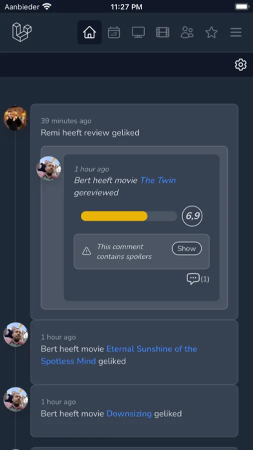 Track the series you follow and the movies you've seen or want to see, check what you've watched, add reviews, comments or likes and share this with your friends through the feed.