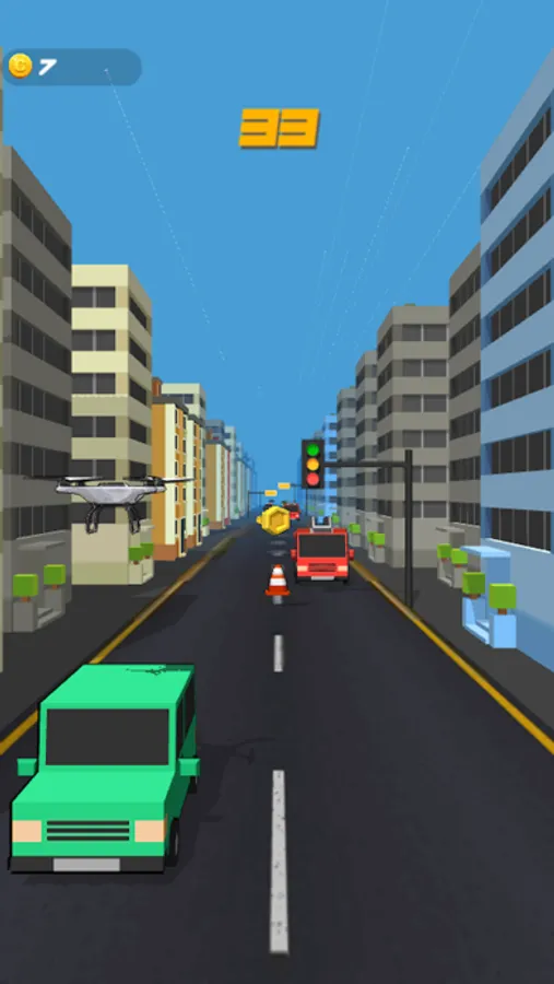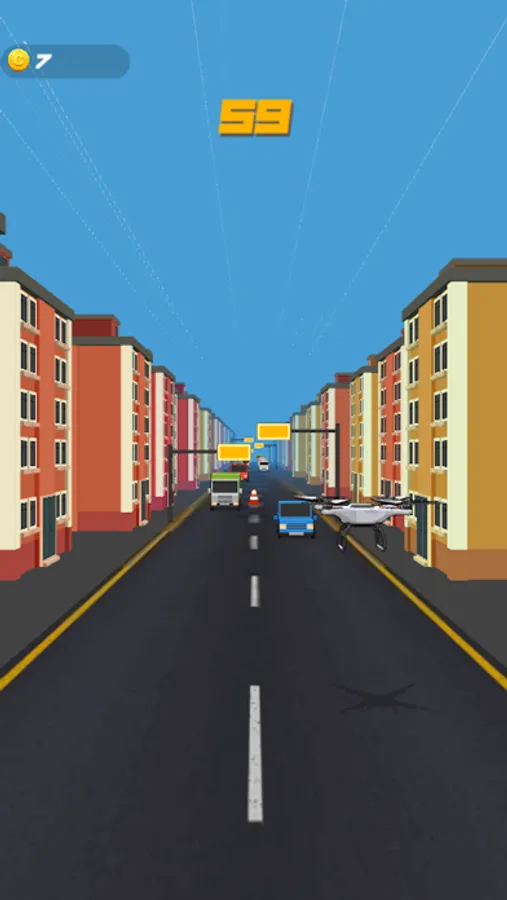 As you fly through the city, you will encounter a variety of challenges, such as buildings, cars, and signs that are trying to take you down. The game is easy to learn but challenging to master. You control the drone by swiping left, right, up, and down to avoid obstacles and collect gems. The longer you survive, the higher your score!