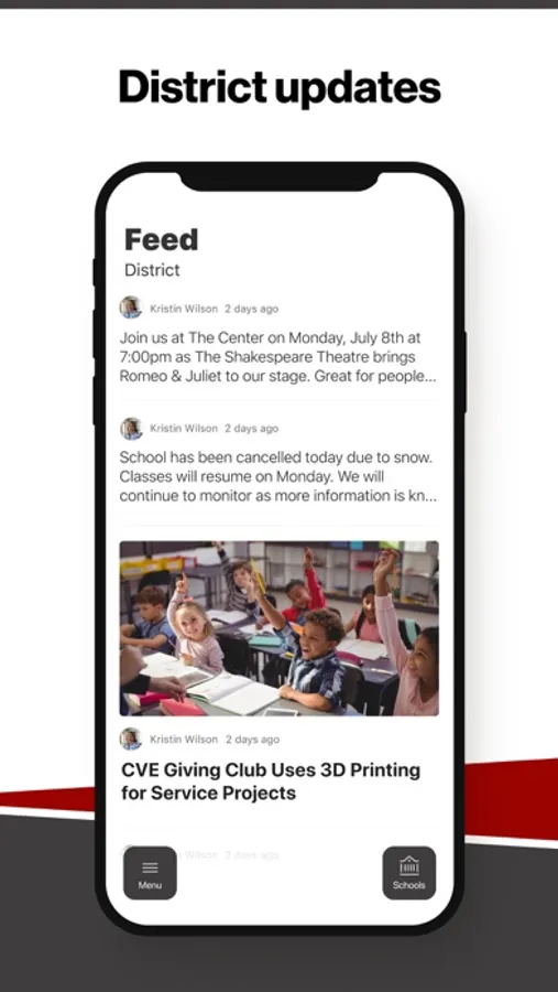 In the Live Feed is where you'll find updates from the administration about what's going on in the district right now. Whether that's celebrating a student's success, or reminding you about an upcoming deadline.