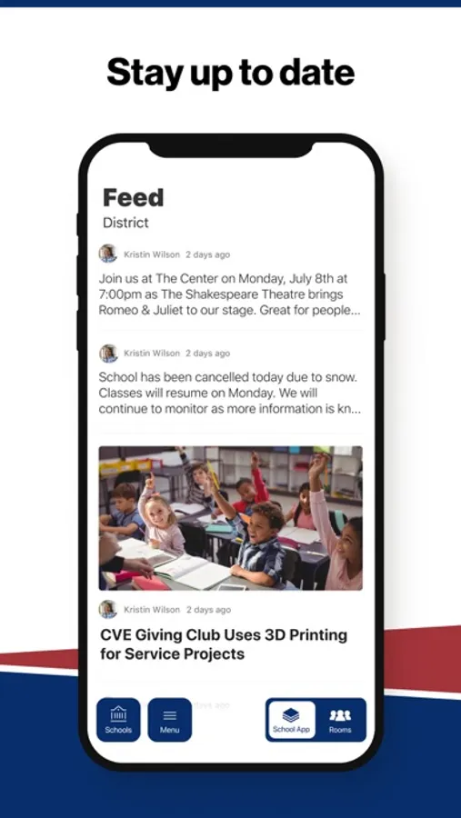 In the Live Feed is where you'll find updates from the administration about what's going on in the district right now. Whether that's celebrating a student's success, or reminding you about an upcoming deadline.