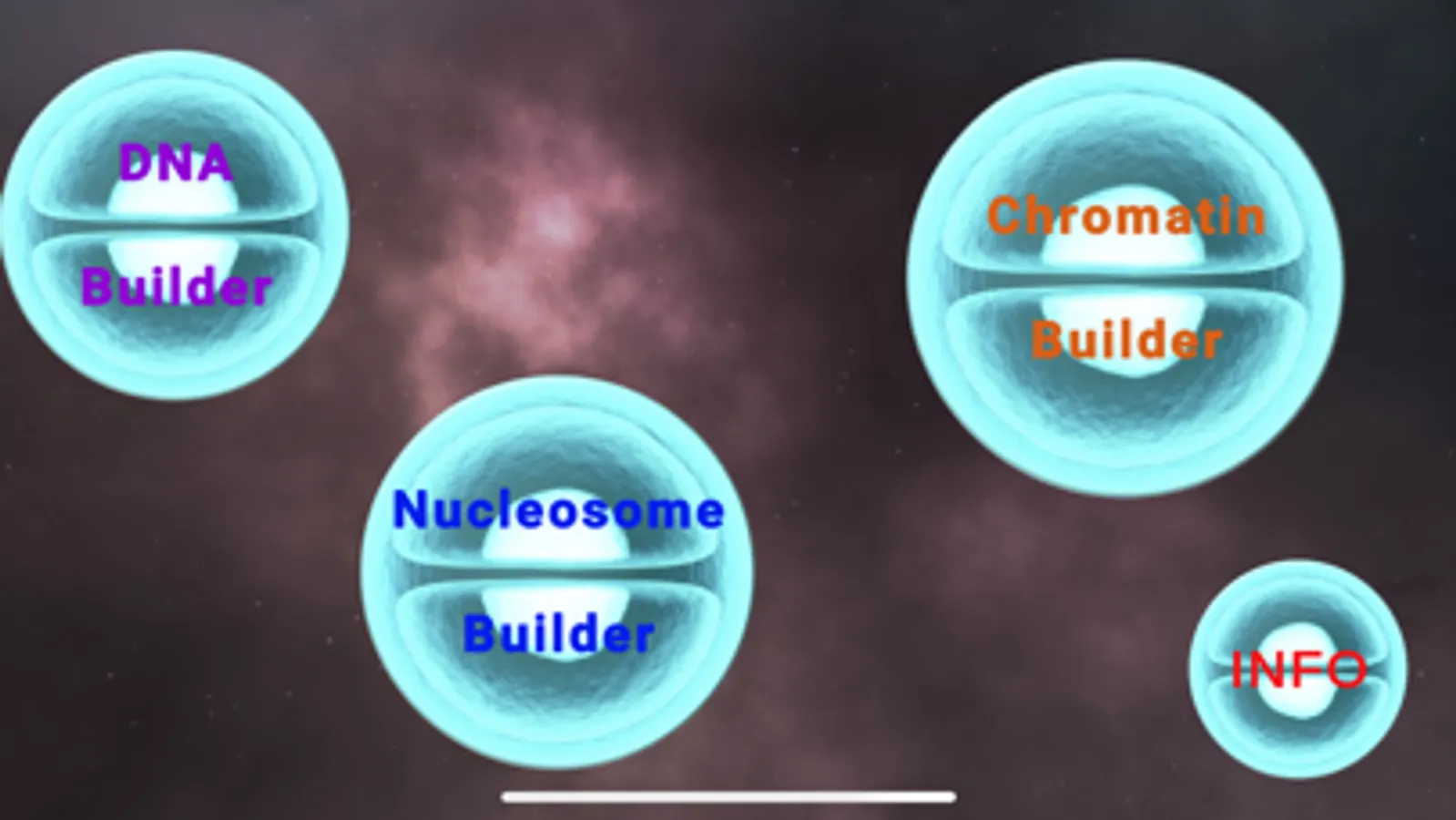 Build DNA, nucleosomes, and chromatins with spatial relations between base pairs and histone cores.
