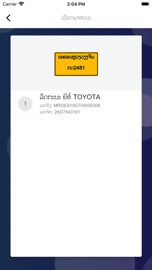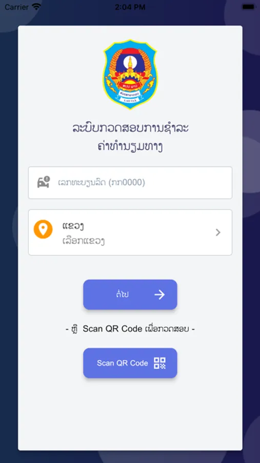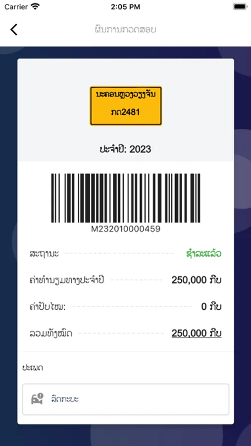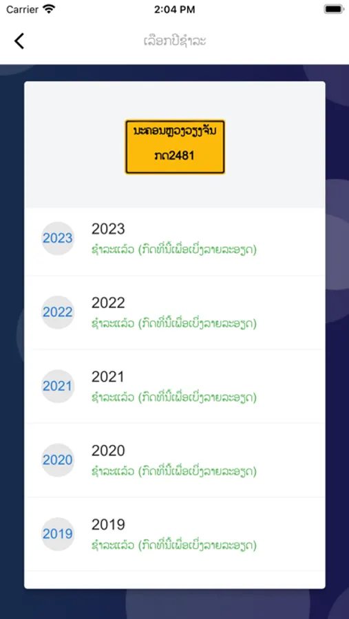 The app for vehicle owner in Lao PDR to check if the annual road tax payment has been paid or not