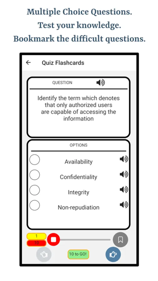 This app is a great resource to learn about Cyber Security. The app is engineered to make users perfect understanding common Cyber Security questions by studying for a very short amount of time. Audio functionality and bookmarking is available throughout the app on chapter, section, study mode and quiz modes.