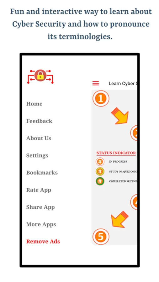 The app will help you learn the correct pronunciation of terminologies used in Cyber Security using English language. Following are the main features of this app