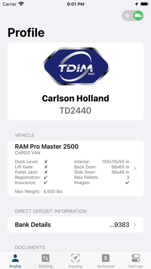 After you're approved and authorized, the dispatch will send you the best loads available in your vicinity and you'll be able to make a bid, accept or reject it!