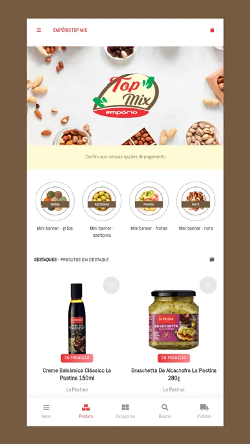 Com o APP do Empório Top Mix você faz suas compras online com praticidade e facilidade sem sair de casa, acompanha seus pedidos em tempo real, tem ofertas exclusivas, cupons, lista de compras com seus produtos favoritos e muito mais.