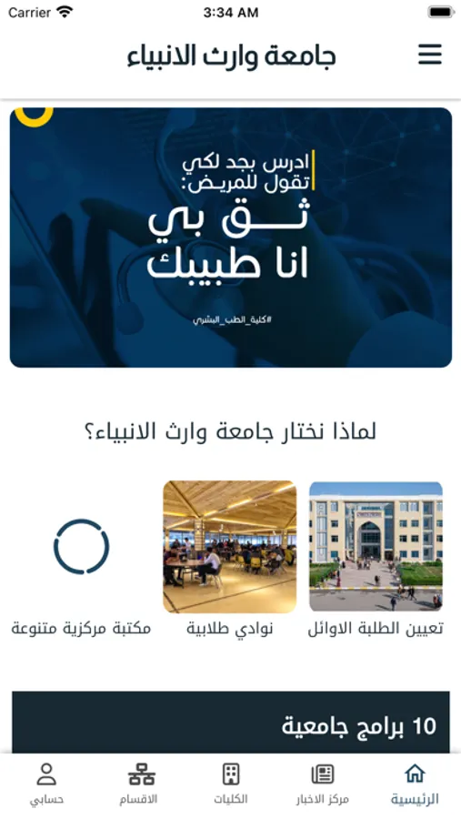 -الاطلاع على احداث واخبار جامعة وارث الأنبياء.