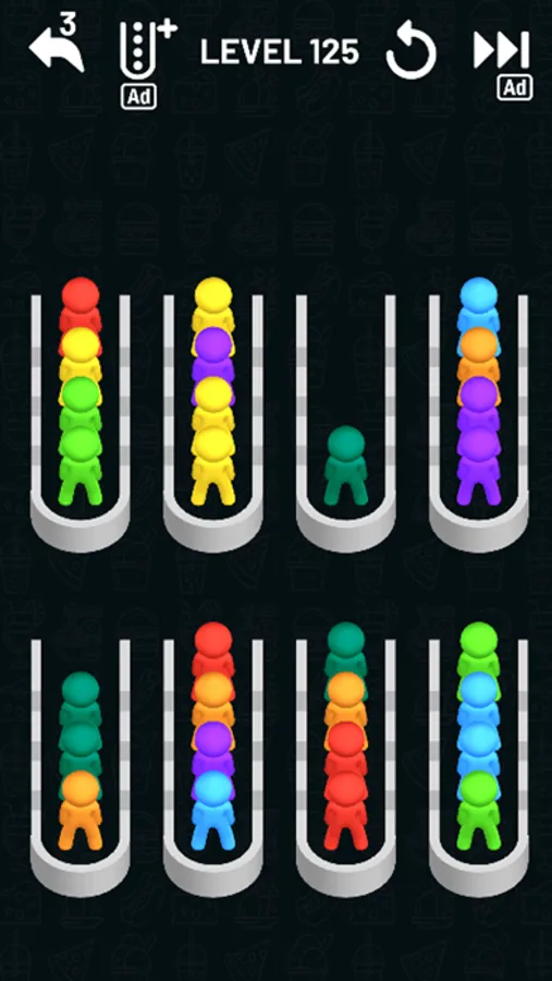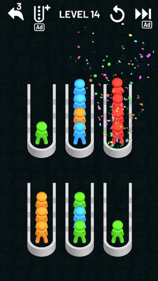 Color Sort's graphics are truly a feast for the eyes, with stunning visuals that showcase vibrant colors and adorable stickman characters. The carefully designed graphics create an immersive atmosphere that captures the player's attention and adds a delightful touch to the overall gaming experience. Every detail, from the mesmerizing color schemes to the charming animations, has been meticulously crafted to provide players with a visually satisfying and aesthetically pleasing journey.