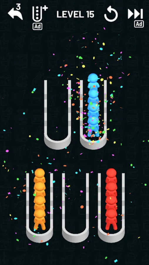 In Color Sort, the objective is to carefully organize the stickman crowds according to their respective colors in order to create harmonious patterns within the different column types. Players must demonstrate their quick reflexes and strategic skills as they race against the clock to arrange the stars accurately and efficiently, aiming to complete each level with precision and excellence in Color Sort.