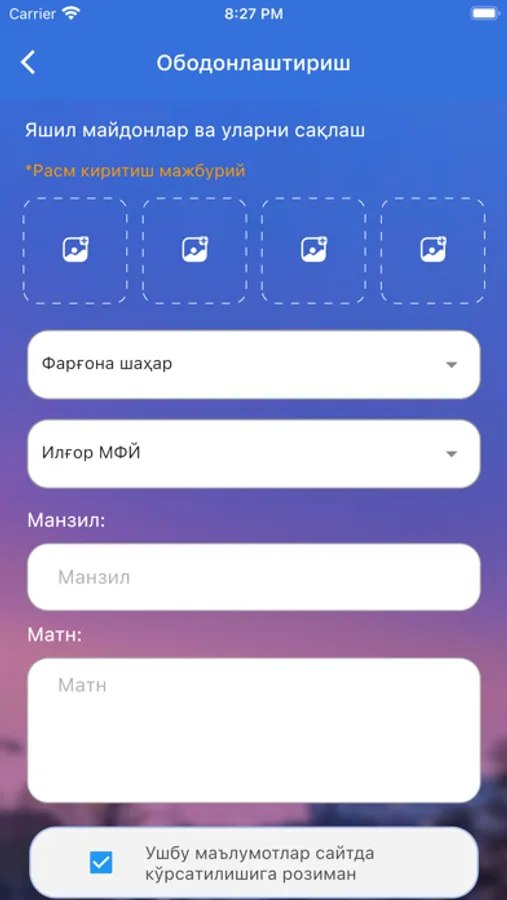 - Соҳага оид социал муаммони танлаб шу соҳа бўйича муаммо юбориш